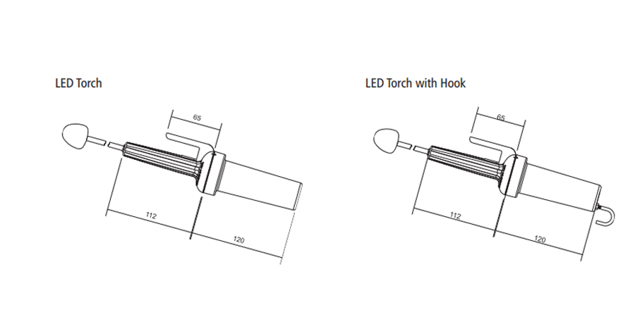 • Operating at low power consumption, the LED hand lamp comes with and without a hook for elevator application.