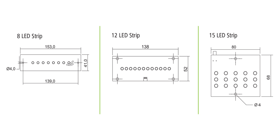 | No. of LED’s | 5 mm Through Hole 8 LEDs | 5 mm Through Hole 8 LEDs | 5 mm Through Hole 8 LEDs |