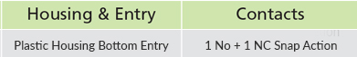 •  Mechanical life - 1 Million & Electrical life - 0.5 Million