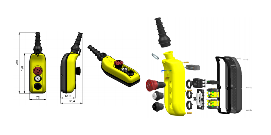The Single Speed Three Way Industrial Pendants are usually used in manufacturing plants where overhead cranes are used for lifting and shifting materials, or big manufactured products, from one station to another workstation.