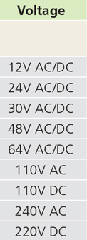 12 V AC/DC, 24 V AC/DC, 30 V AC/DC, 48 V AC/DC, |