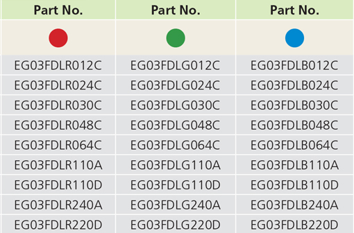 | Available Colours | Red / Green / Yellow / Amber / Blue / White |